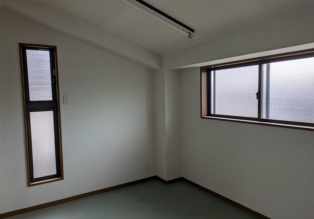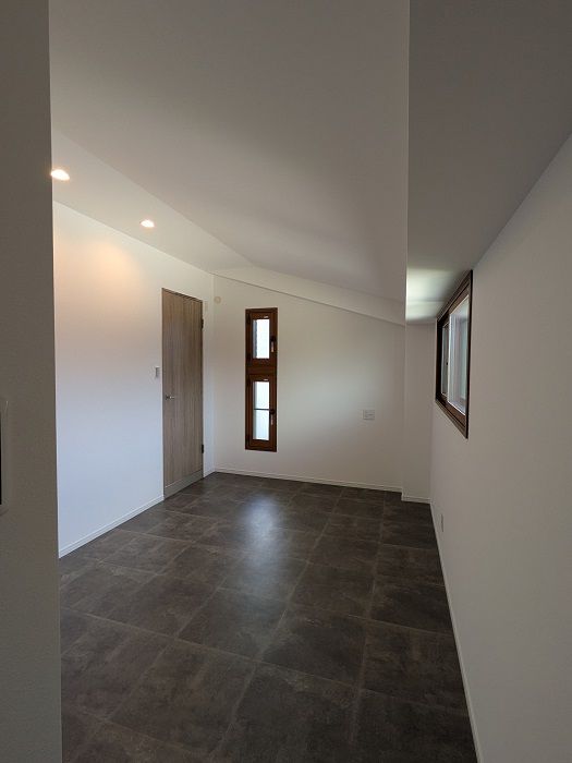 元はトレーニングルームだったお部屋を寝室へ改装しました。落ち着いた雰囲気になるよう貼ったモルタル調の床材は奥様にも気に入っていただけました!